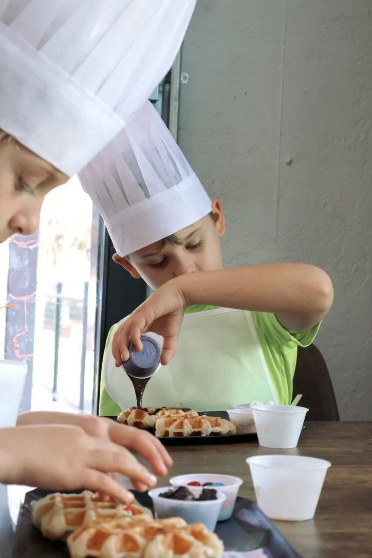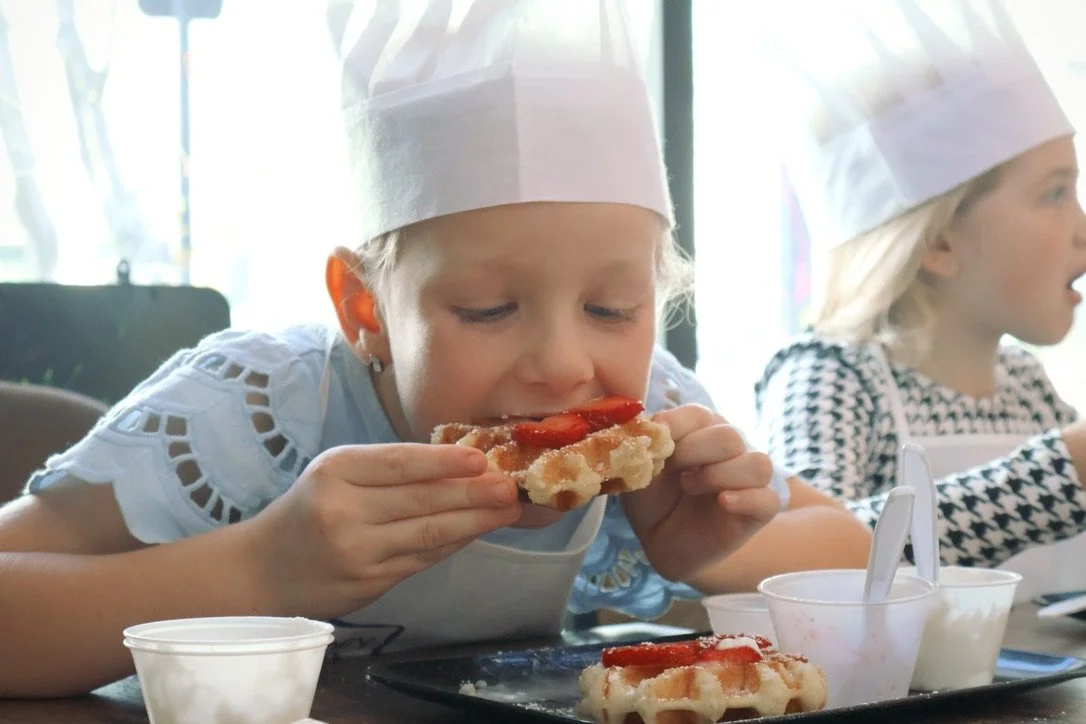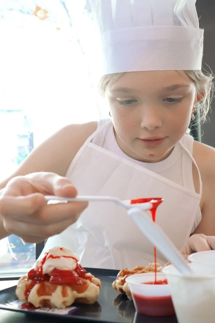 Our Waffle Workshops are playful, hands-on experiences where kids learn how to make waffles, create, and turn them into something fun and memorable.